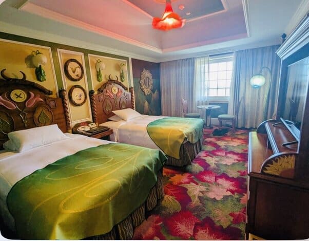 We wanted to go with a character room over anything else so we stayed at the Tokyo Disneyland Hotel (other hotels have rooms with Mickey pillows etc but for a fully themed room this was our only option.)