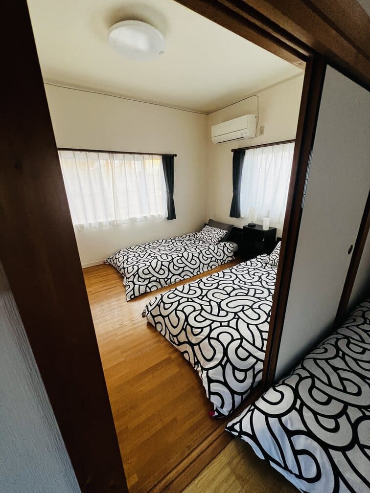 Benten Residences is in the Higashiyama District (it’s so so beautiful here -especially at night.) This is a 3 bedroom restored old Japanese home. This home is beautiful but does require a short walk to the closest station for 11 mins and you’ll need to take a cab or bus to Kyoto Station. There are lots of stairs here. For the location and stair reasons, I, personally, only recommend this home to those with kids who are 8 or older (kids who can manage a little commute daily as it will get old quickly with little kids.) The Japanese bath here is stunning. Even though it is a home, the owners are happy for you to forward luggage to their office ahead of time. Some bedrooms are western style and others tatami.