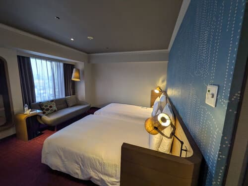 Centara Grand Hotel Osaka is a higher end of hotel (and a price tag to match) but it is beautiful and the hotel is connected to the Namba Parks shopping complex. The family rooms here have a king bed and a set of bunk beds – so it is great for a family of four who really like to stay in 5 star hotels. This hotel also can organise for connecting rooms for larger families. This hotel has a spa for beauty and massage treatments – there is also a rooftop fine dining restaurant.