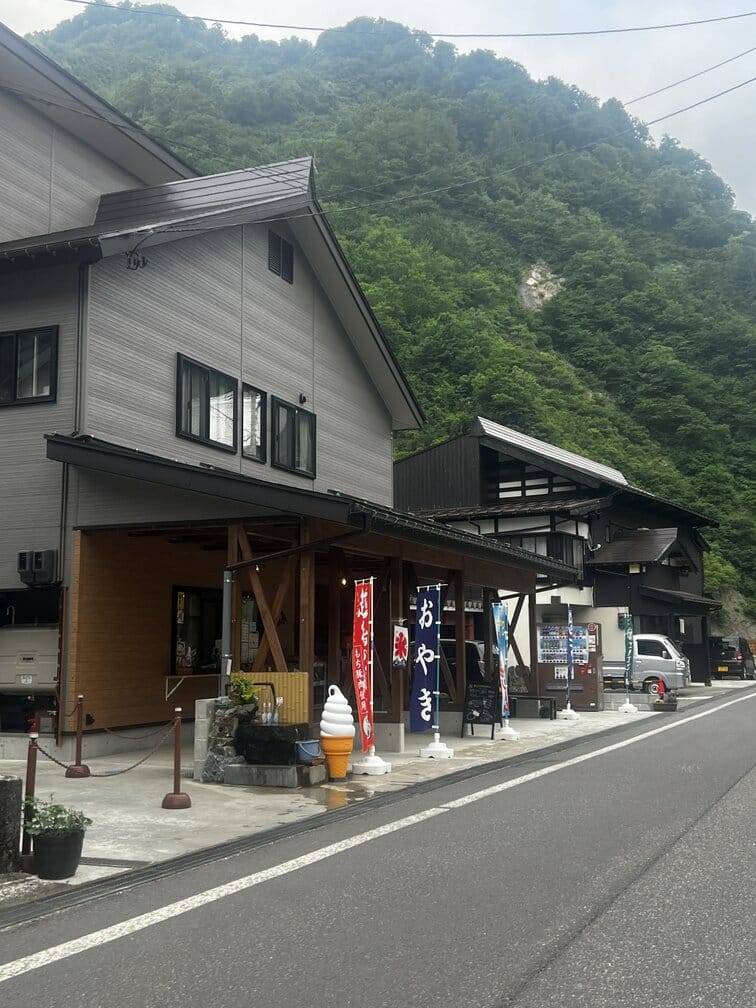 Sasagoya is a little cafe/souvenir shop just outside the tunnel entrance next to the carpark. They sell soft-serve ice-cream and oyaki (wheat buns with savoury fillings.)