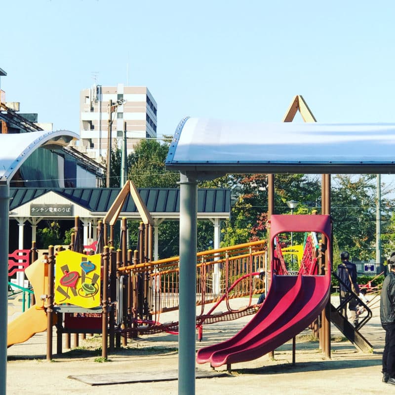 Around 8 mins by car from Kyoto Station is Umekoji Park (or 3 mins or so by train plus a short walk) that has a very decent sized playground and empty train carriages for kids to explore.