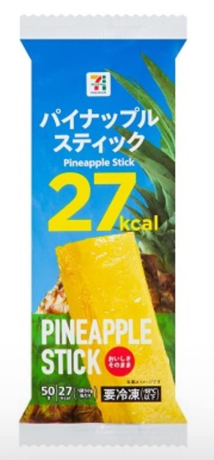 This is in the icecream section of 7-Eleven but it is just a frozen stick of pineapple. Perfect for kids and adults! Especially during the heat of Japanese summer.