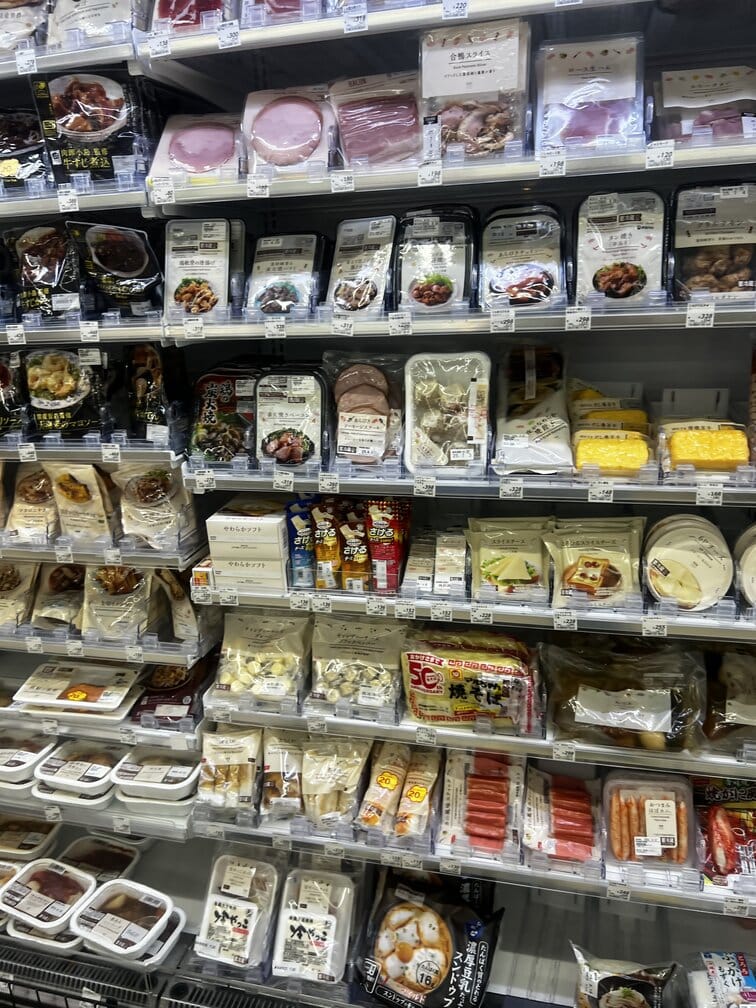 In most countries in the world – it would only be a very, very brave person who dared to eat a “meal” made up of convenience store food but, in Japan, you can find an entire deli section, salads, bakery goods (all delivered daily), household supplies, sweets, alcohol, frozen foods etc.