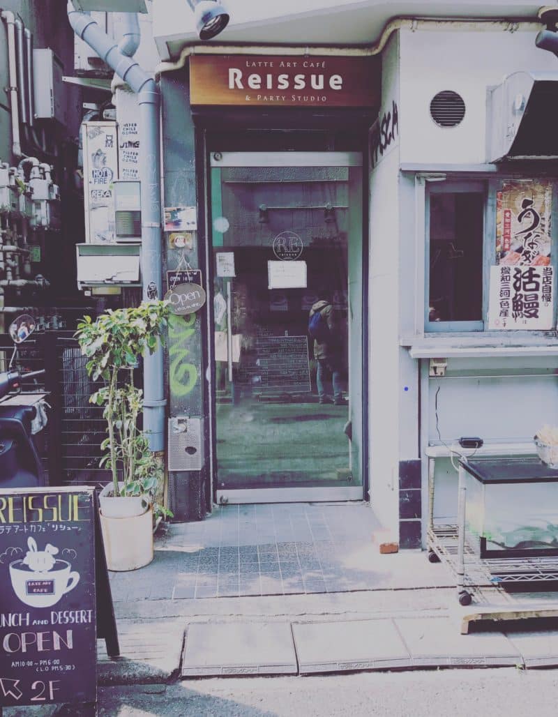 It’s located in the back grungy alleyways of Harajuku. You are shown to your seat , you choose your coffee or hot chocolate and then show a picture or photo (on your phone is fine) of what you would like on top. The drink order takes about 15 minutes so don’t wait until you’re dying for a hot drink.They really are so talented. It’s definitely not the cheapest cup of coffee ( around 1000 yen) but is a really fun thing to do for adults and children. Reissue also serve rice, soup or salad lunch plates.