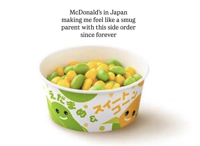 Did you know that instead of fries at McDonald’s Japan you can order a side of edamame and corn. My daughter LOVES it!