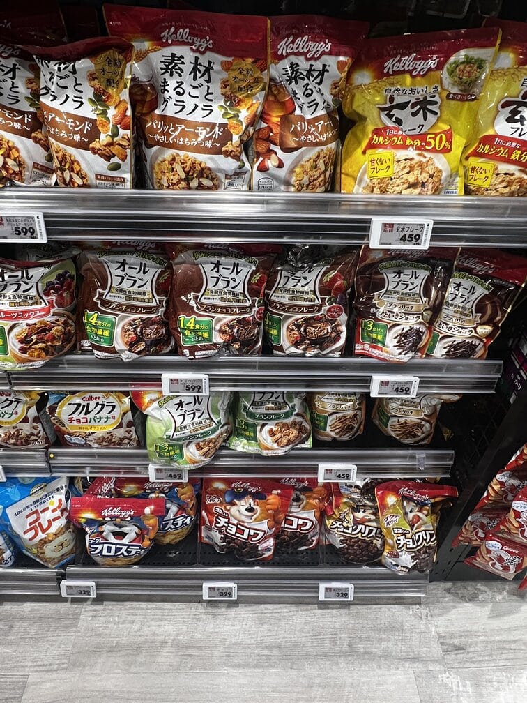 And if you’re willing to go to an actual supermarket – here is an example of a bigger range of granola and cereals. So many tourists forget that Japan has actual supermarkets. Google “supermarket near me” for all the closest options.