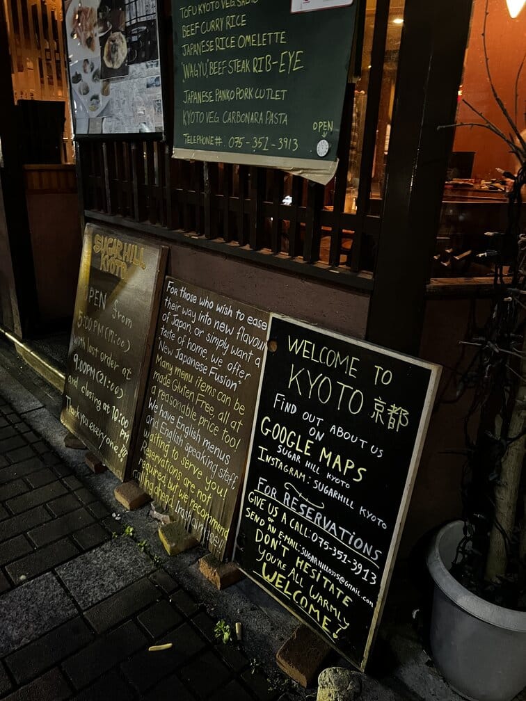 They can get busy so it is a good idea to make a reservation. Make a reservation at Sugarhill Kyoto online here. I recommend budgeting 4000 yen per adult for a meal here – the cuisine is Japanese & Italian Fusion. This is also a great place for parents to try hot and cold sake. The entire restaurant is non-smoking. Learn more about Sugarhill Kyoto on Trip Advisor here.